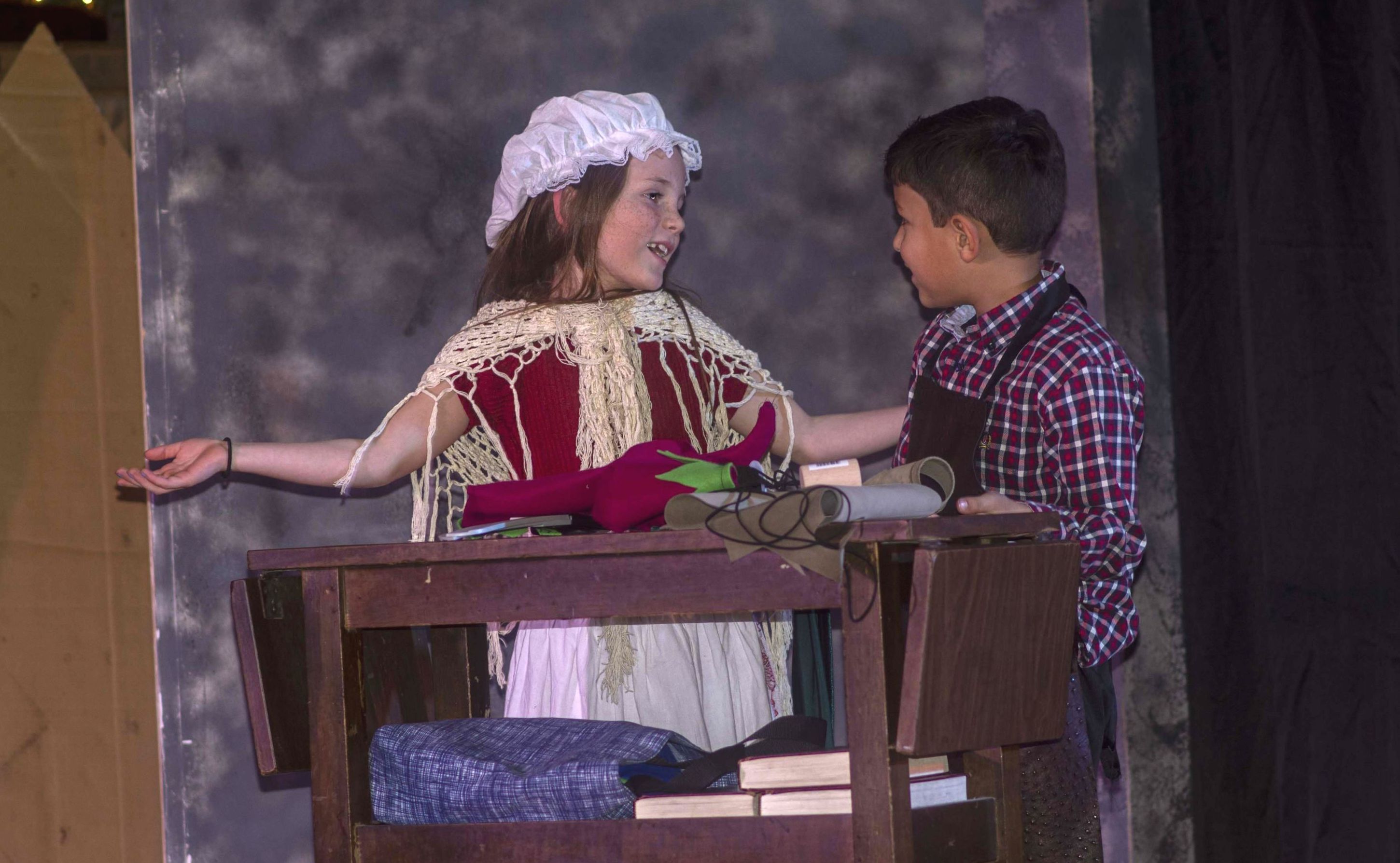 As part of the Humanities Vault (clustered with art and music classes), the drama class is offered to Cathedral students beginning in first grade. The purpose of the drama class is to introduce young students to the world of theatre, though its benefits reach far beyond acting. As students read, memorize, and perform adaptations of various classical stories, they develop important life skills such as public speaking, physical expression, reading/subtext comprehension, and the ability to work in an ensemble. Academically, the experience of physically embodying a character brings the story to life as students learn about characterization, plot structure, mood, and other literary elements.